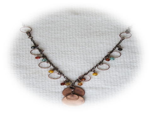 オールシーズン使えて、 長さも自由自在に変えられて、 意外と使いやすいのが このアクセサリー。インパクト大です! ワイヤーにビーズを通した後、 細いチェーンで天然石を付けていきます。