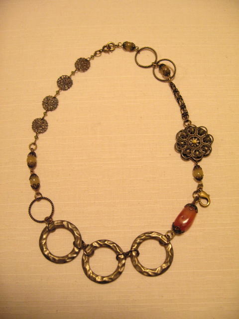 | 15. 9ピンを通したチェコでジャラジャラと... 光に当たるとキラキラです。 | 16. 細い輪のパーツが涼しげです。 | 17. 殆どインドのお友達からお土産で貰ったパーツです。 日本では見かけないパーツですね〜。。 |