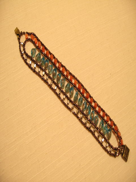 39. 初めて作った幅のあるブレスレット。 とにかく種類豊富にビーズを使ってみようと試みたものです。 |