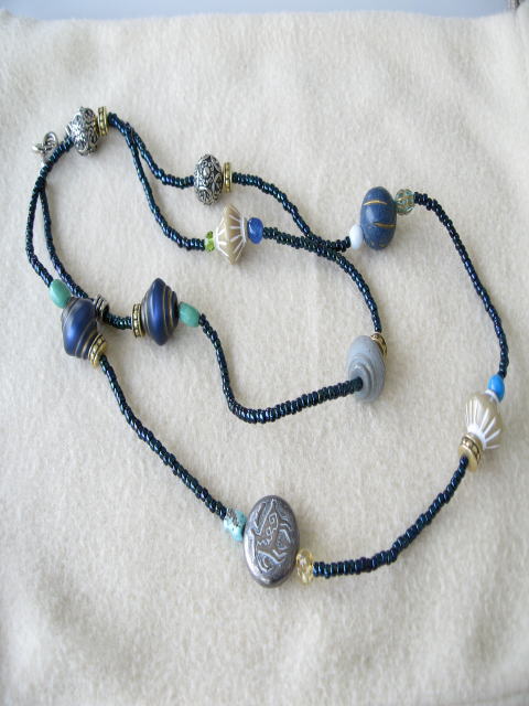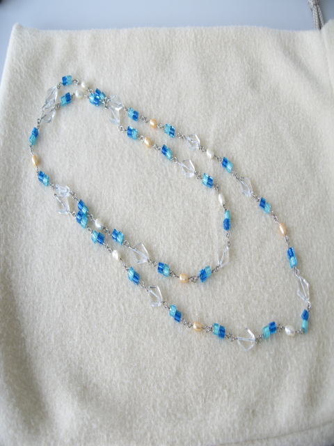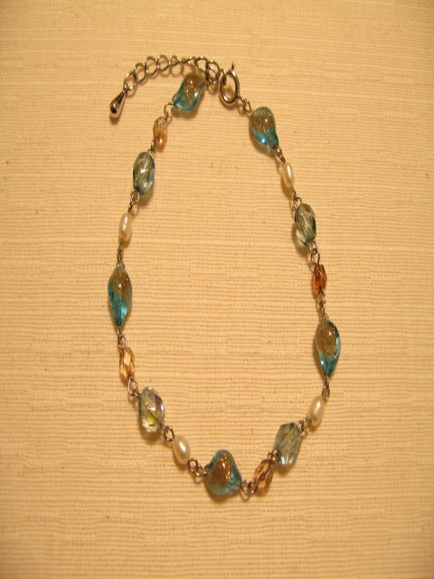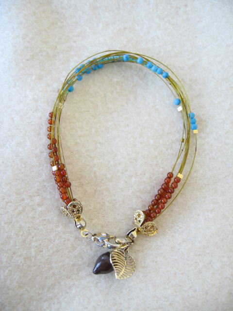 | 6. 夏に付けたい涼しげな色です。 | 7. これは七宝焼きのビーズです。 | 8. お土産に頂いたインドビーズで作りました。 日本に売っているのかな...? |