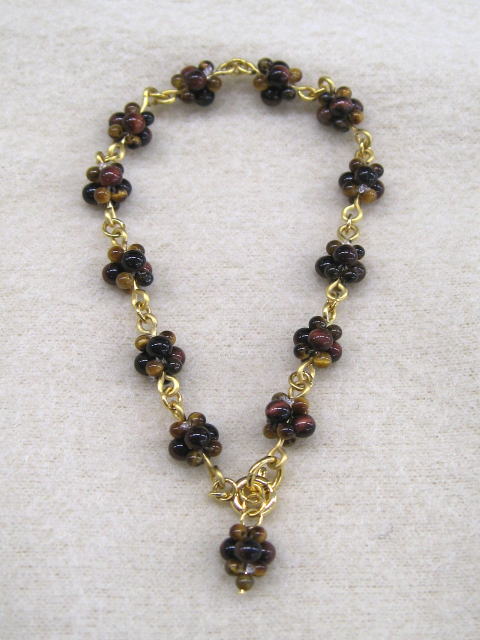 35. タイガーアイのモチーフは一つ一つテグスで編みます。 | 36. このアンティークっぽさも好きなんです。 |